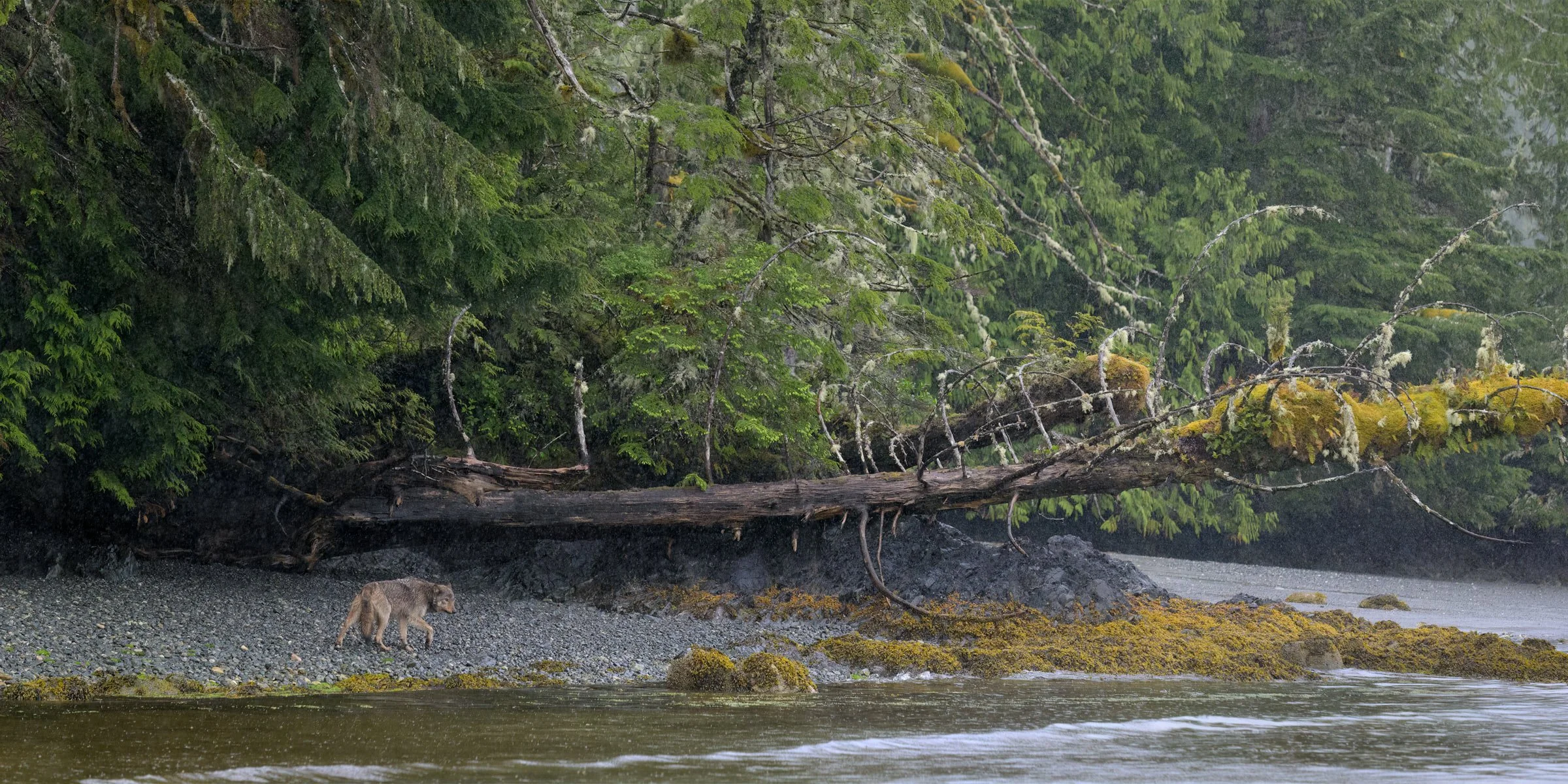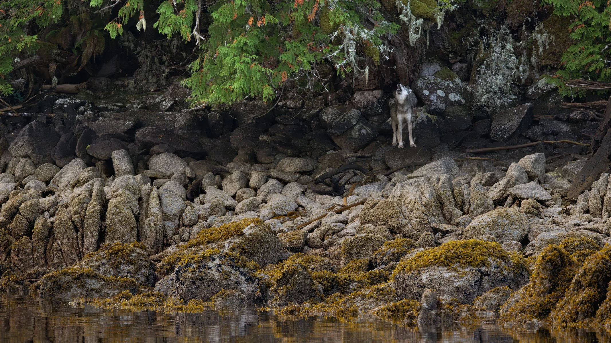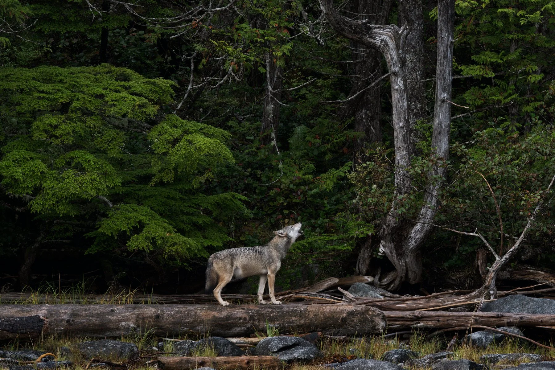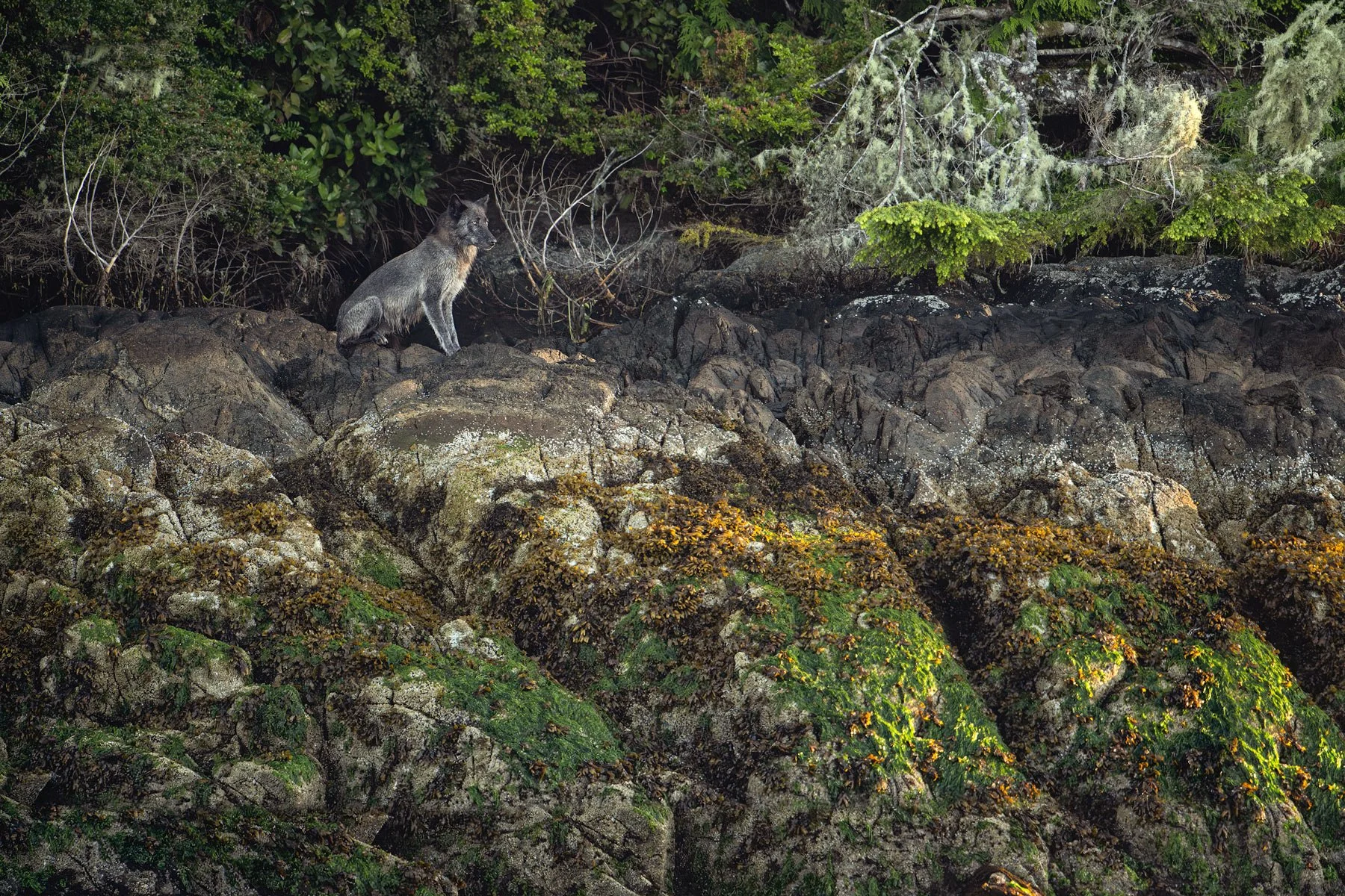 The wolves are placed in their greater environment: ancient forests, tidal rhythms, seasonal cycles.